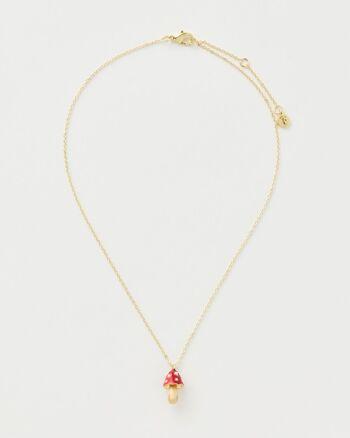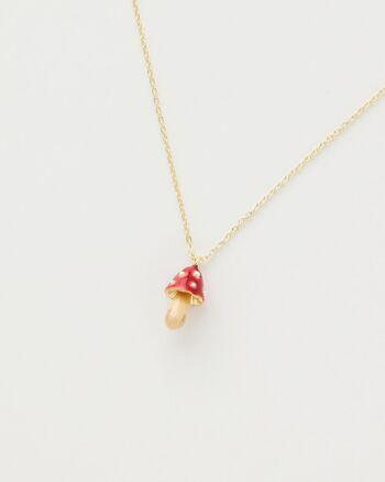 collana corta (41cm) con catena in ottone placcata oro con ciondolo (20x10mm) a forma di funghetto, smalto dipinto a mano
