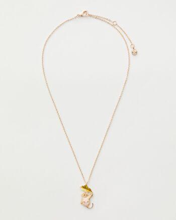 collana corta (41cm) placcata oro rosa con ciondolo (27x13mm) smaltato e dipinto a mano