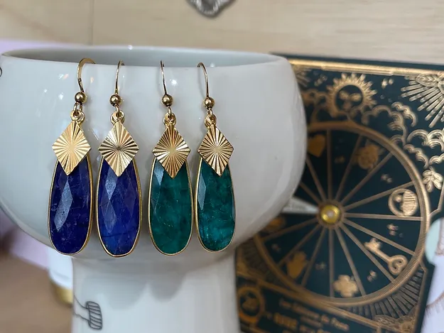 orecchini in ottone placcato oro con goccia lapis