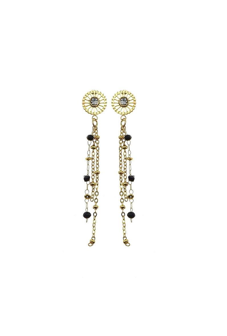 orecchini pendenti con micro perline nere e catenine sottili dorate