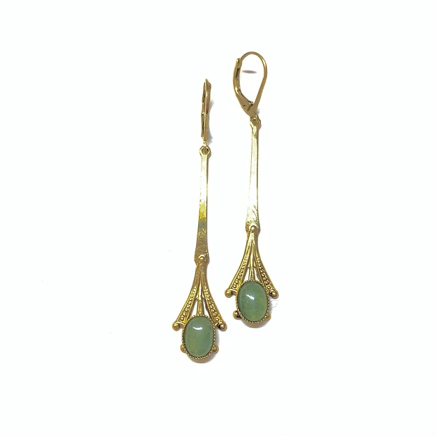 orecchini in ottone placcato oro con cabochon(8x6mm) di avventurina