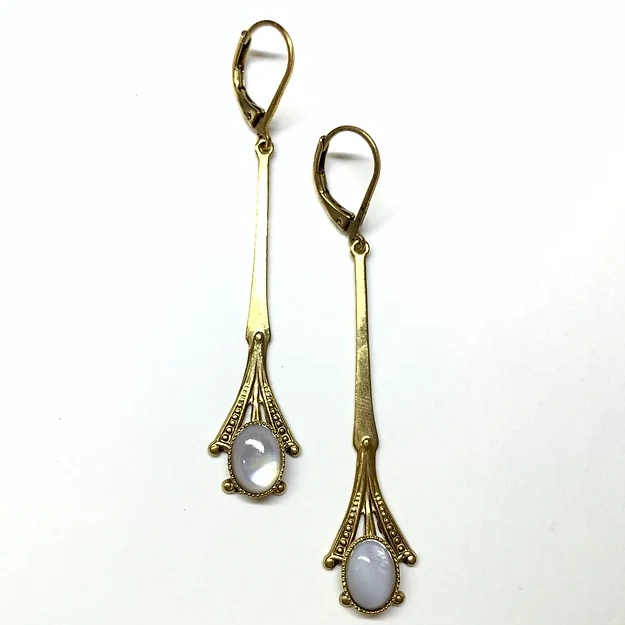 orecchini in ottone placcato oro con cabochon(8x6mm) in nacre long:5cm