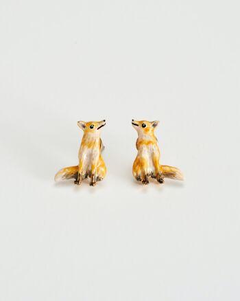 orecchini a bottone (14x10mm) raffiguranti una simpatica volpe, smaltati, intagliati e dipinti a mano